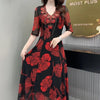 [Meilleur Cadeau Pour Elle] Robe Florale Longue à Taille Amincissante avec Col en V pour Femmes