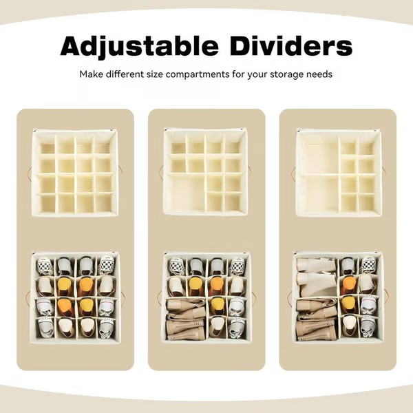 COMPARTIMENTS RÉGLABLES : Le système d'emboîtement unique des boîtes à chaussures permet un assemblage facile et des solutions de rangement personnalisées. Les séparateurs du range-chaussures peuvent être ajustés en fonction de la taille de vos chaussures, garantissant ainsi à chaque paire un espace dédié et optimisant l'espace de rangement.