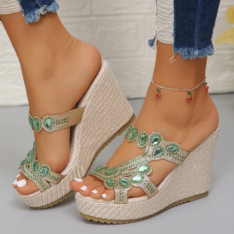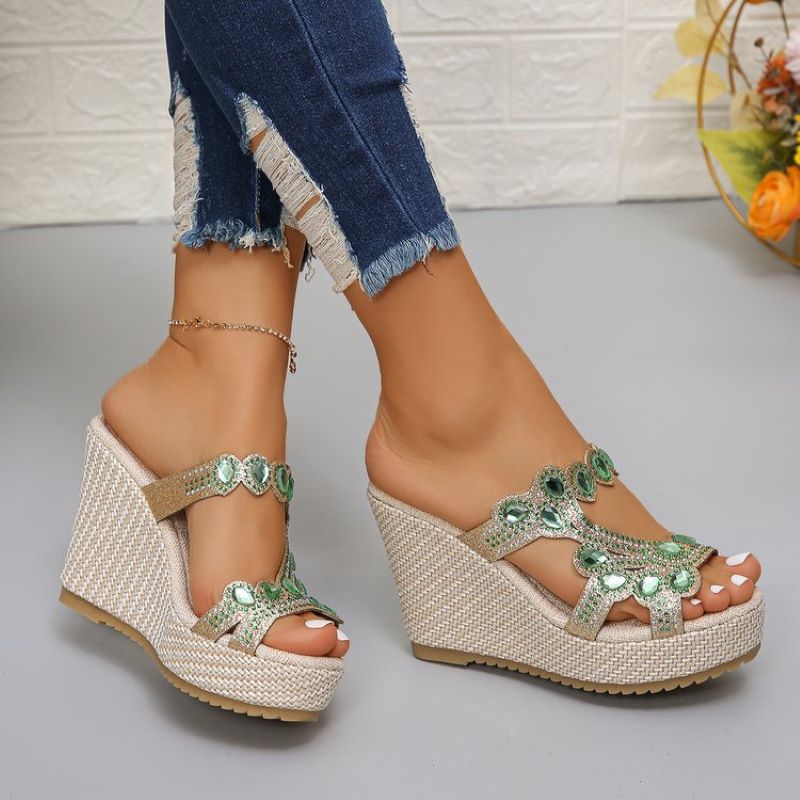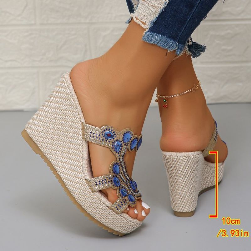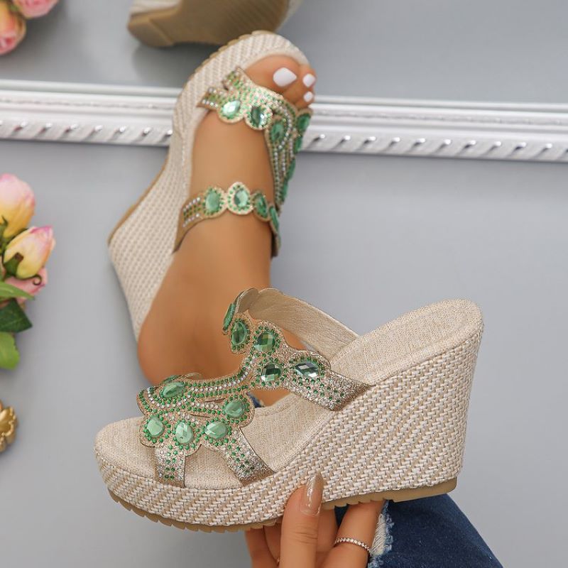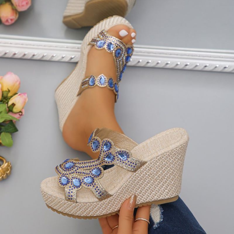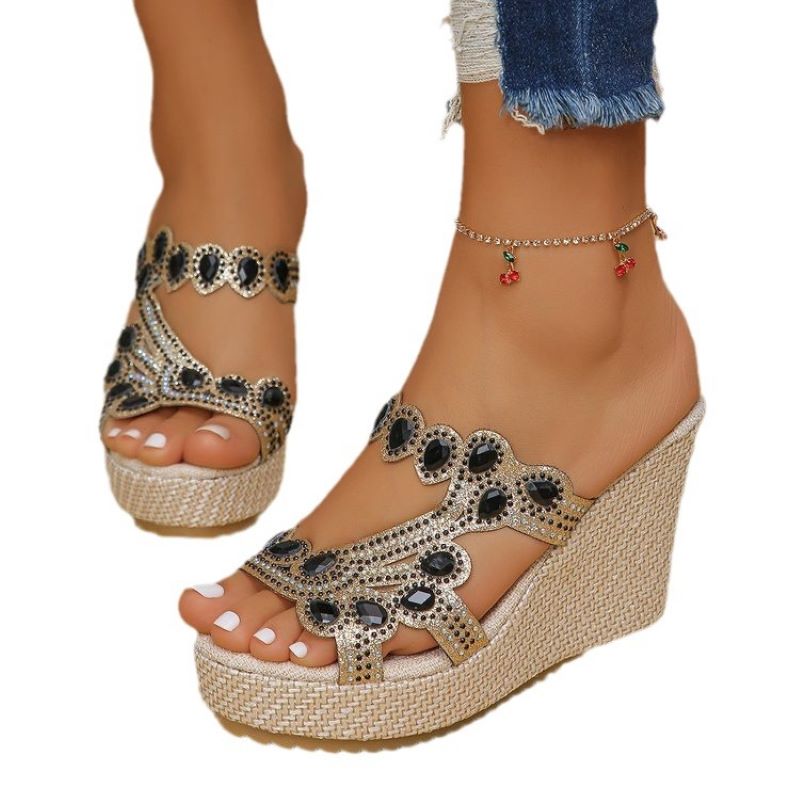 đ„ Hot Sale đ„Sandales Ă semelles compensĂ©es antidĂ©rapantes de luxe avec strass pour femmes