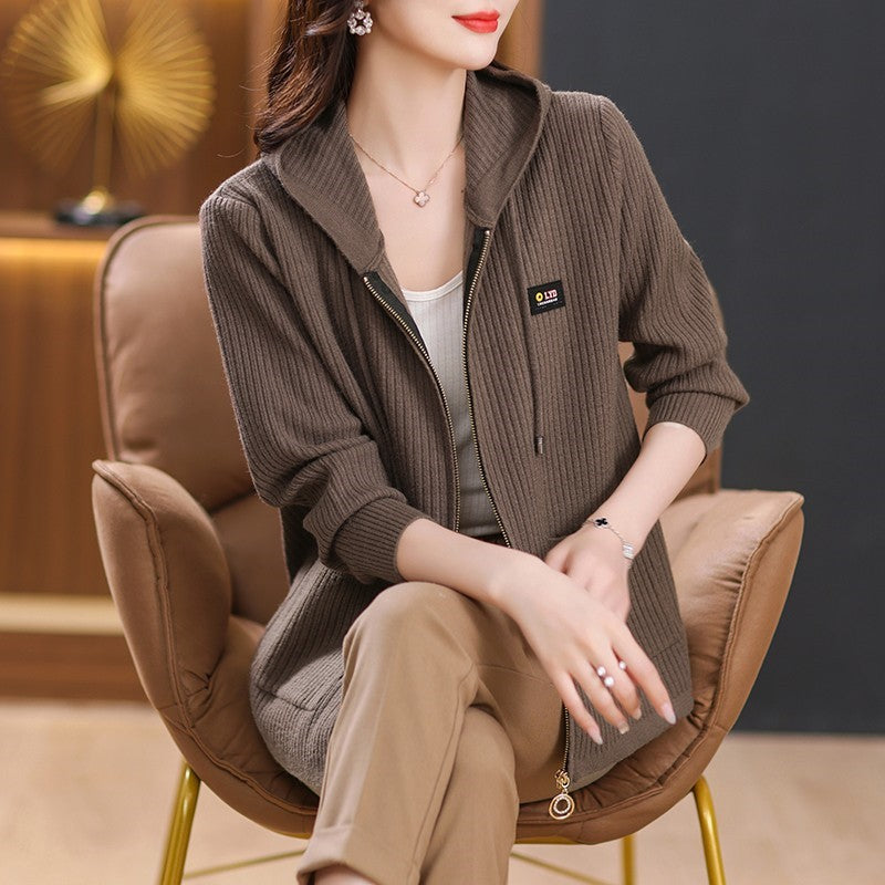 Veste en tricot avec fermeture à glissière de la capuche et poches pratiques