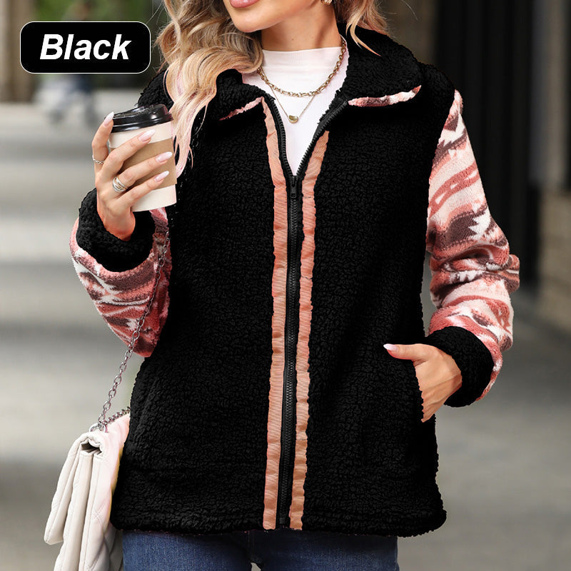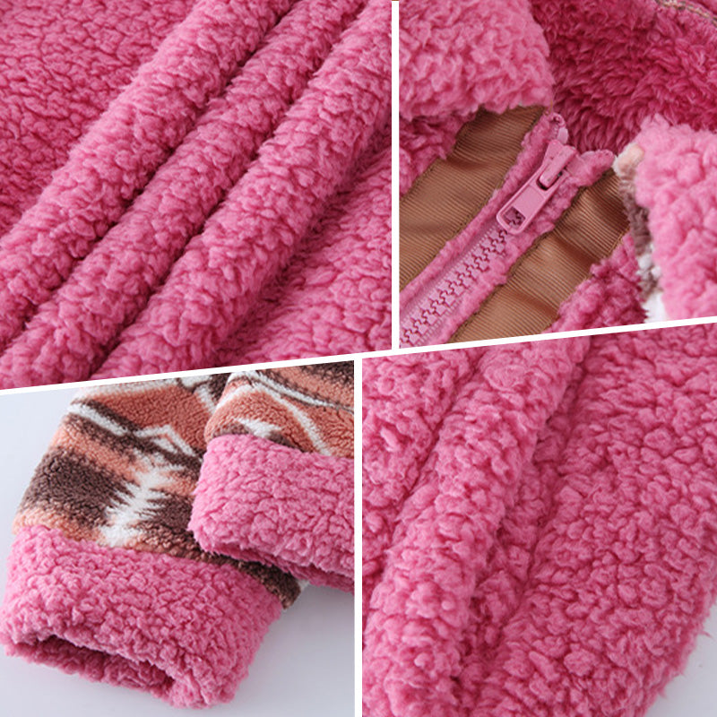 Veste en polaire sherpa avec imprimé tribal et fermeture éclair pour femmes
