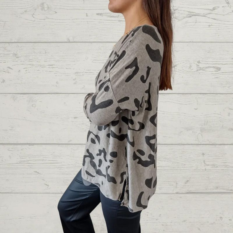 Le forfait comprend: 1 * T-shirt à manches longues à imprimé animal italien pour les femmes