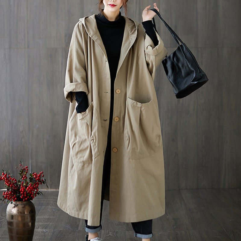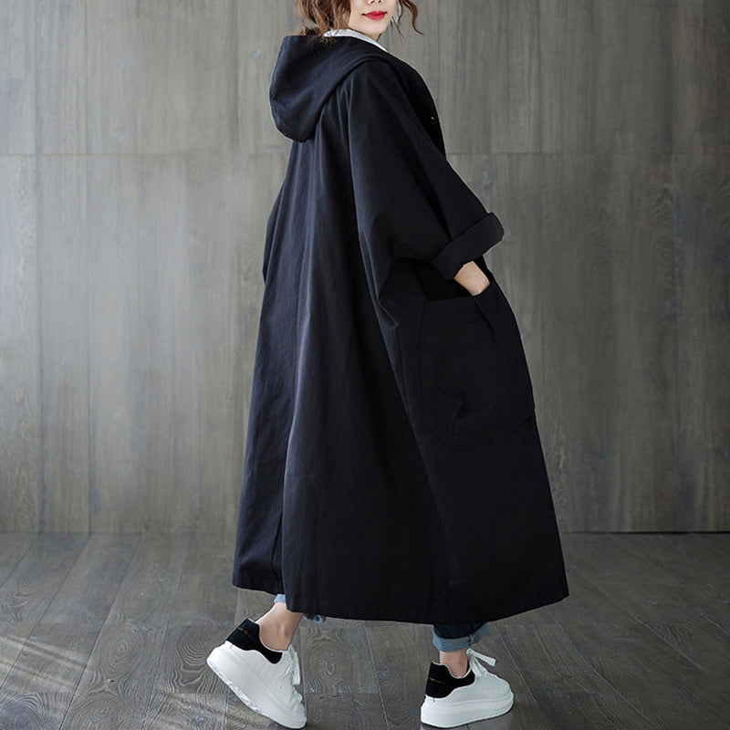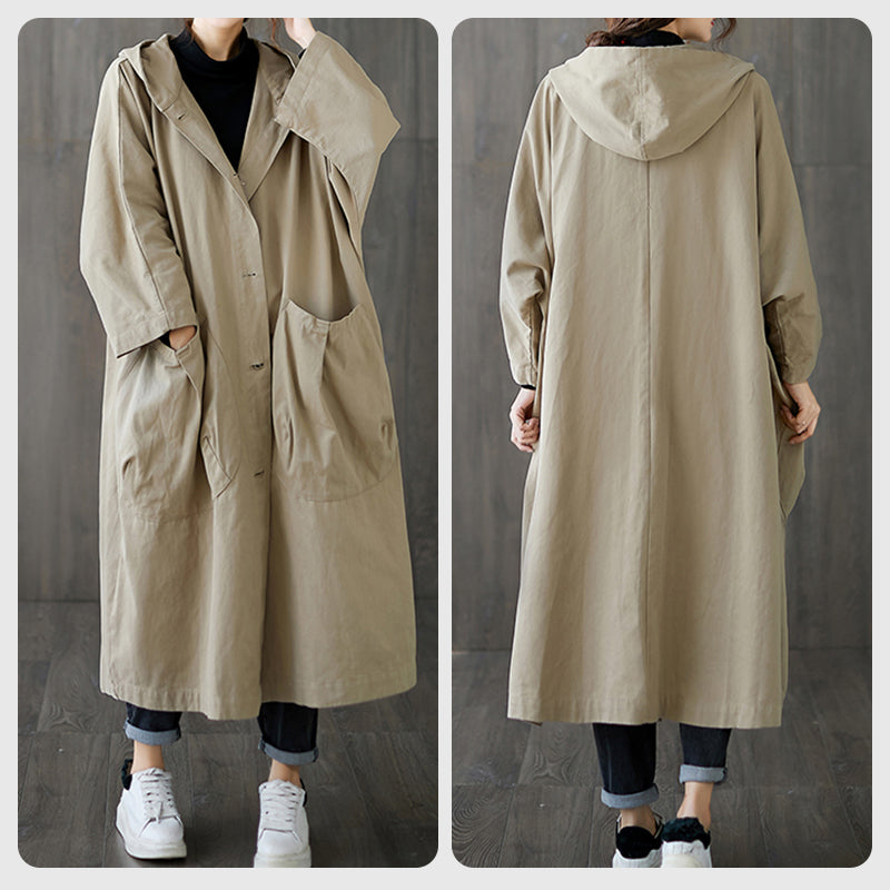 💗 Trench-coat long surdimensionné à capuche avec grandes poches