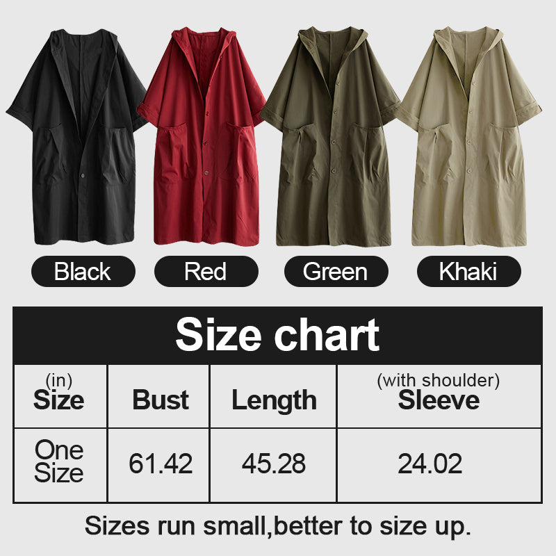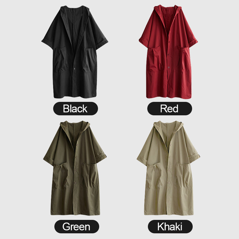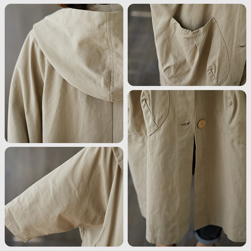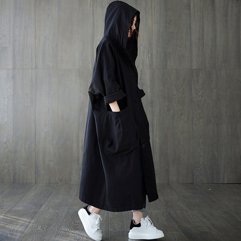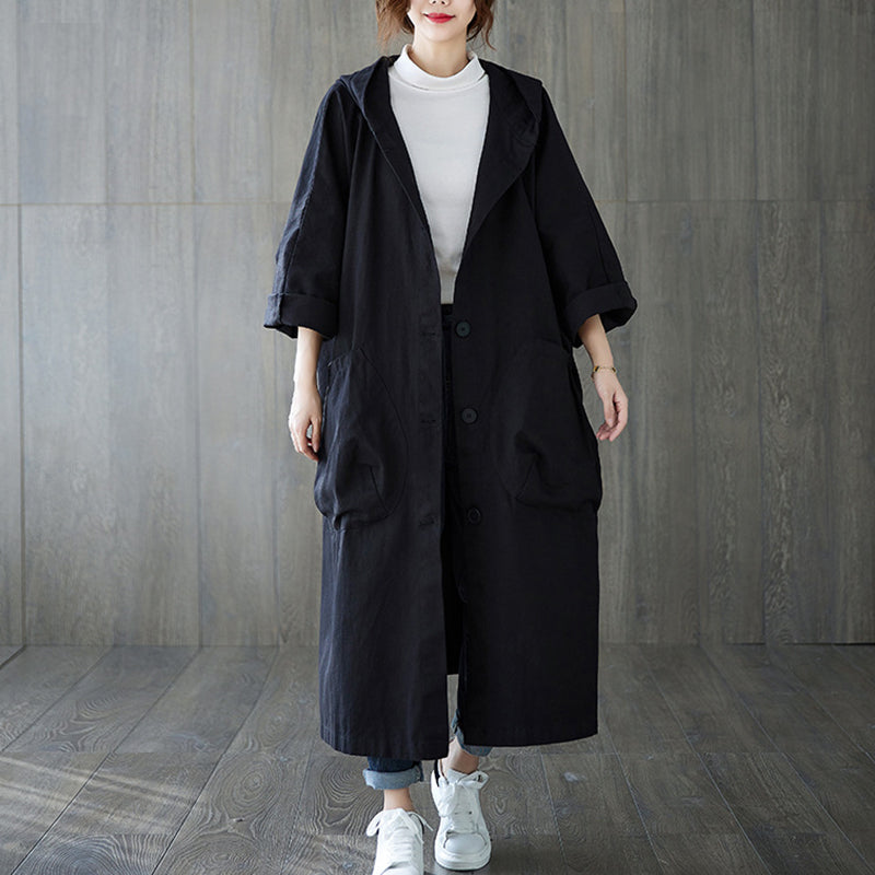 Design unique - Manteaux longs et décontractés pour femmes avec 2 grandes poches latérales profondes, design moderne à capuche, manches larges et confortables et fermeture boutonnée, parfaits comme coupe-vent dans un look élégant.