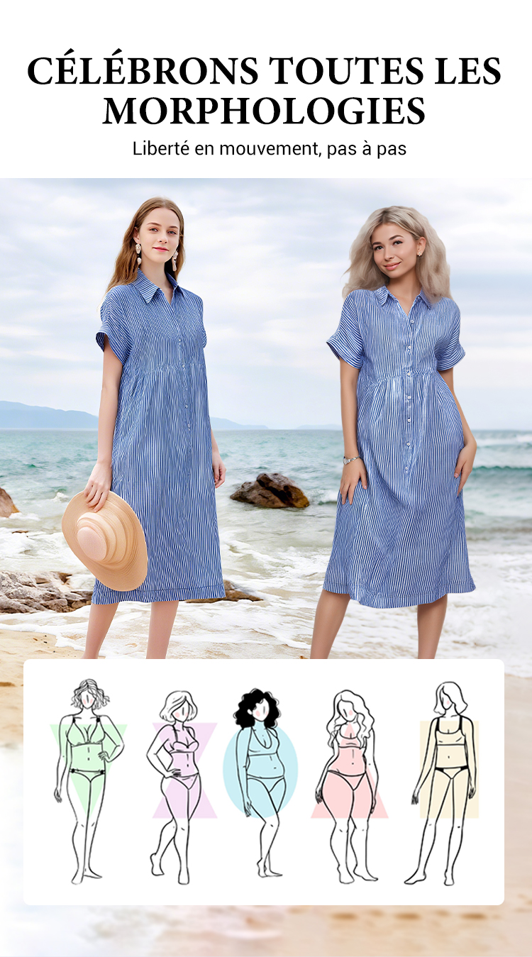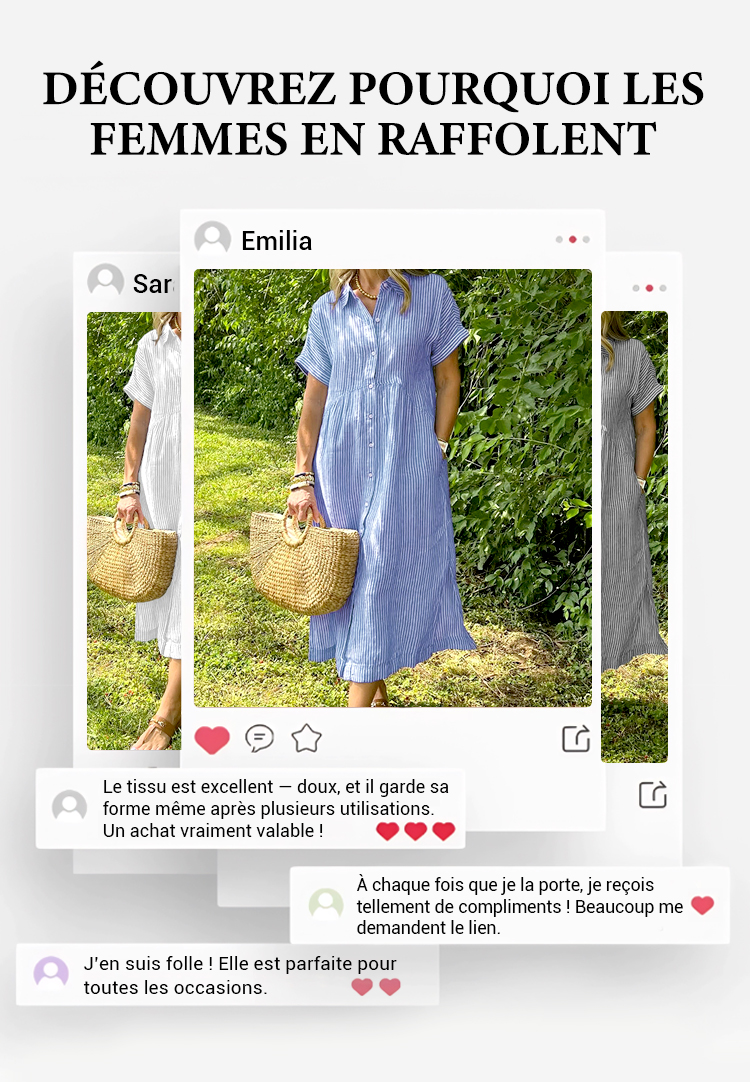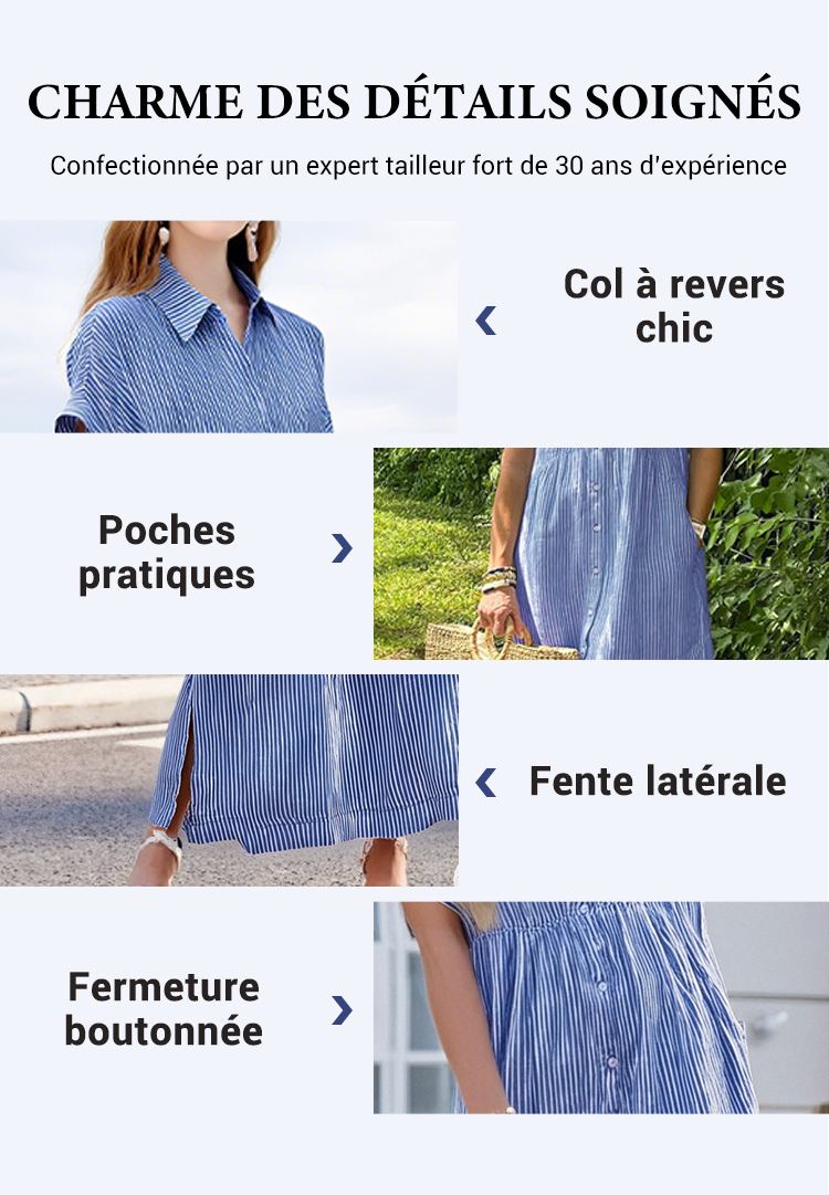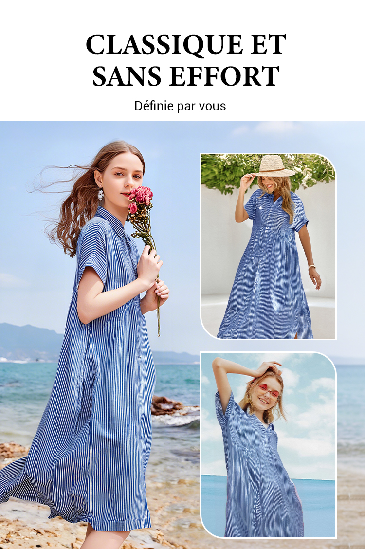 ⏳Réductions temporaires Super-Économies ⏳👗Robe chemisier long rayé col V pour femme
