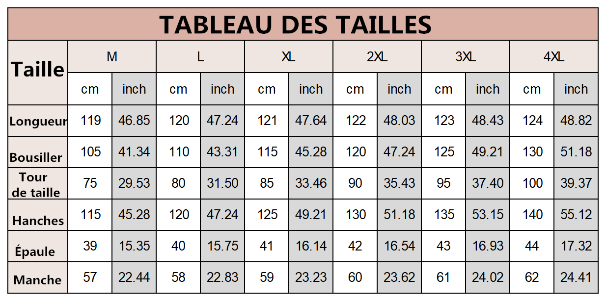 Taille : m, l, xl, 2x M, L, XL, 2XL, 3XL, 4XL