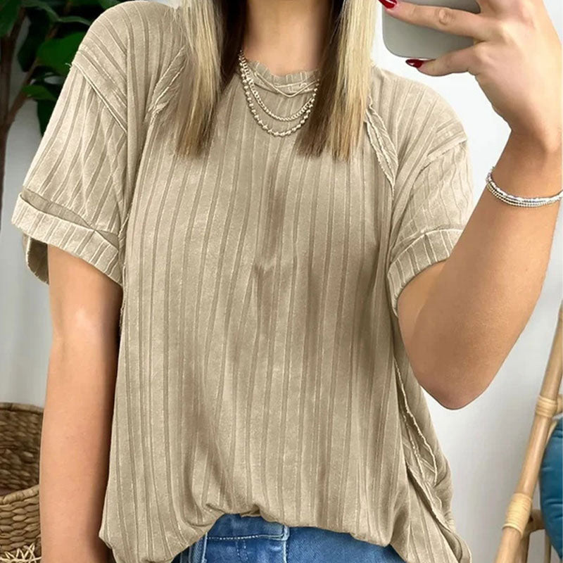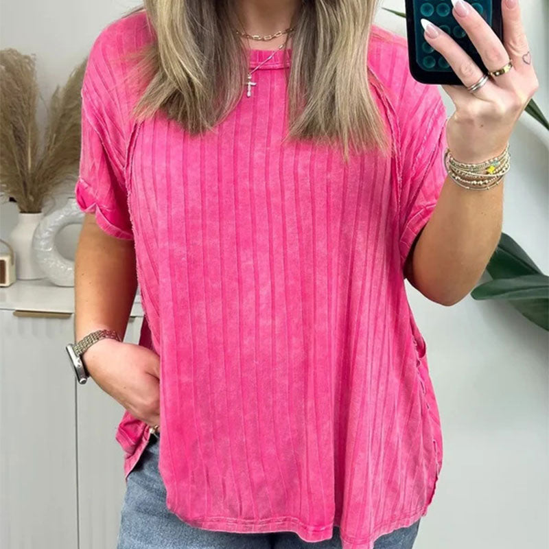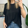Installez-vous confortablement dans notre haut en tricot rayé cÎtelé surdimensionné ! Parfait pour toute journée décontractée, ce haut est un incontournable de votre garde-robe !!