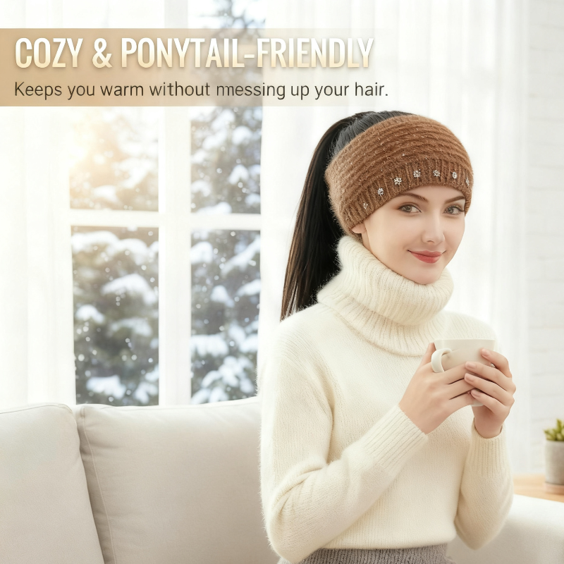 ELEGANT FLOWER ACCENTS - Adorned with delicate, sparkling flower-shaped details, this headband adds a touch of chic style to your winter wardrobe. It’s an easy way to elevate any casual or sporty outfit.