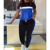 Ensemble 2 pièces pour femmes composé d'un haut à manches courtes et d'un pantalon avec poignets et cordon de serrage en couleur contrastée